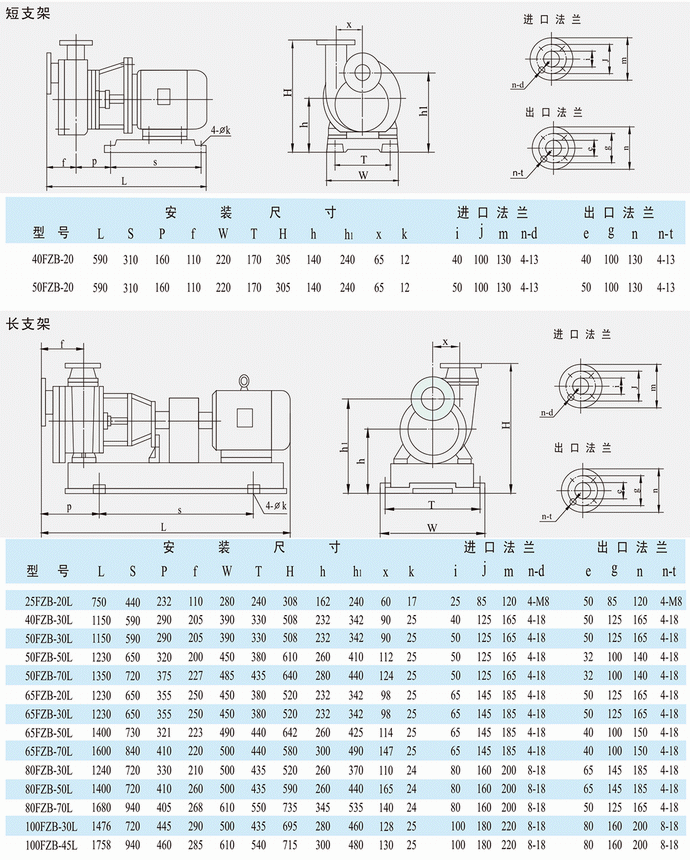 FZB型耐腐蝕自吸泵安裝尺寸表: