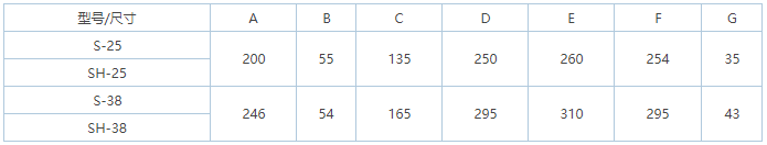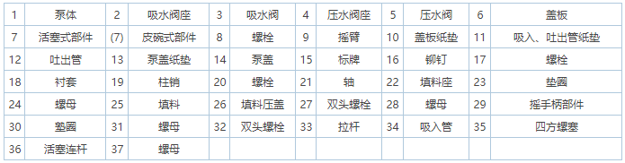 S、SH-25、38型手搖泵性能參數(shù)表: