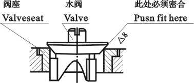 每臺水搖泵有四只水閥,即吸水閥及壓水閥各二只,都裝在泵體上,只要拆除蓋板螺母,就可取出(參看水閥示圖)。檢查水閥的關(guān)鍵問題,須檢查閥與閥座是否密合,即使用一段時(shí)間后,可能已被磨損腐蝕不平,而造成漏水,因此在檢修時(shí)須將閥拆開檢查,倘已發(fā)現(xiàn)不平,則須用研磨砂研磨,閥與閥座接合處光潔度為△8。