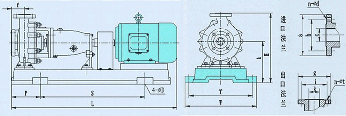 IHF型耐腐蝕化工泵外形結(jié)構(gòu)圖:
