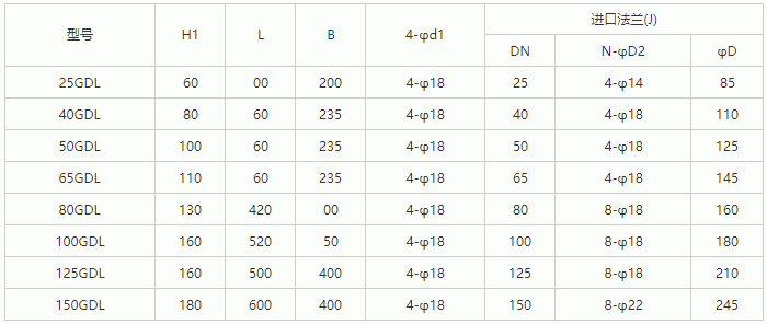 GDL型立式多級管道離心泵性能參數(shù)表: