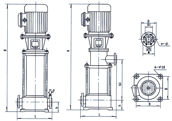 GDL型立式多級管道離心泵外形結(jié)構(gòu)圖: