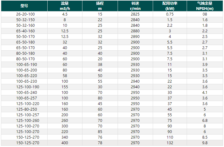 LQRY型導(dǎo)熱油泵性能參數(shù)表: