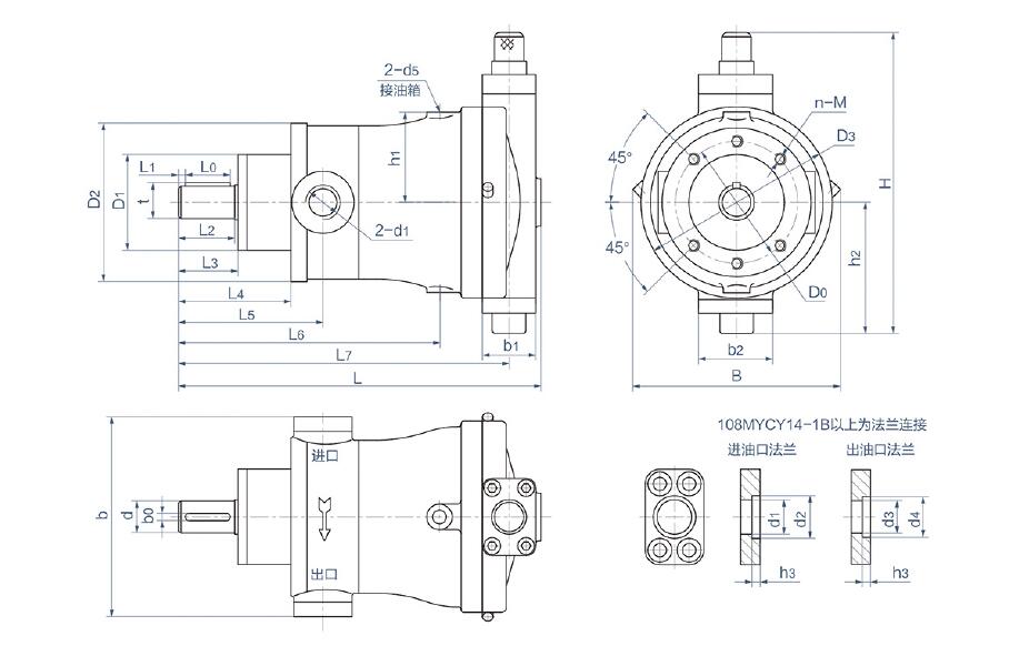 MYCY14-1B 定級變量軸向柱塞泵外形尺寸: