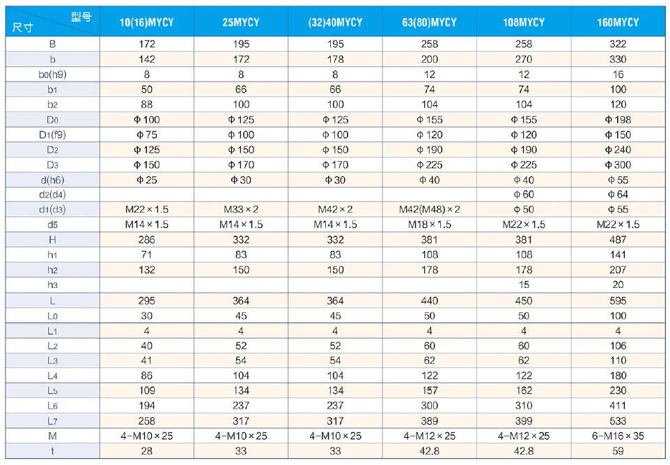 MYCY14-1B 定級變量軸向柱塞泵外形尺寸表: