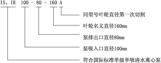 IS、IR型單級(jí)單吸離心泵型號(hào)意義: