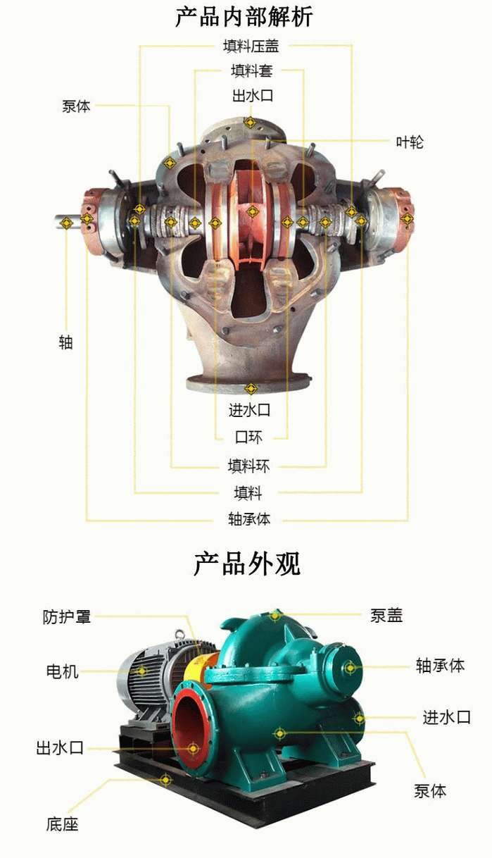 S、SH型臥式雙吸離心泵內(nèi)部解析圖: