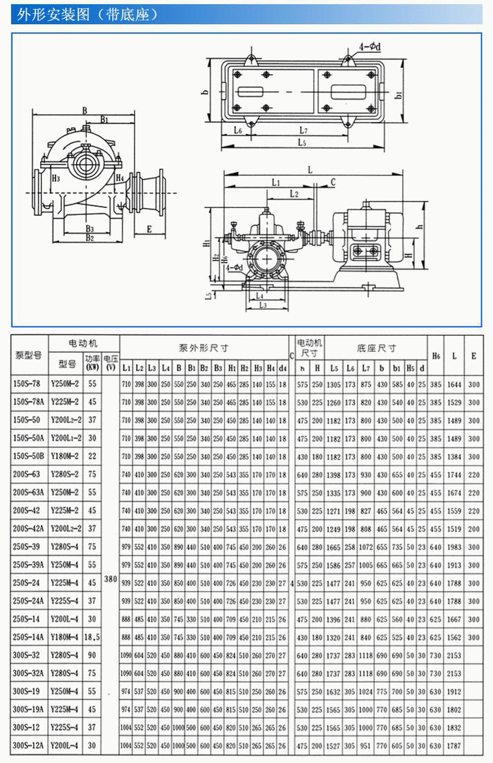 S、SH型臥式雙吸離心泵安裝尺寸圖: