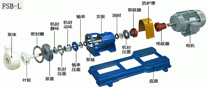 1、FSB-L型氟塑料合金離心泵是小流量、低揚程、全密封、高效節(jié)能耐酸離心泵。