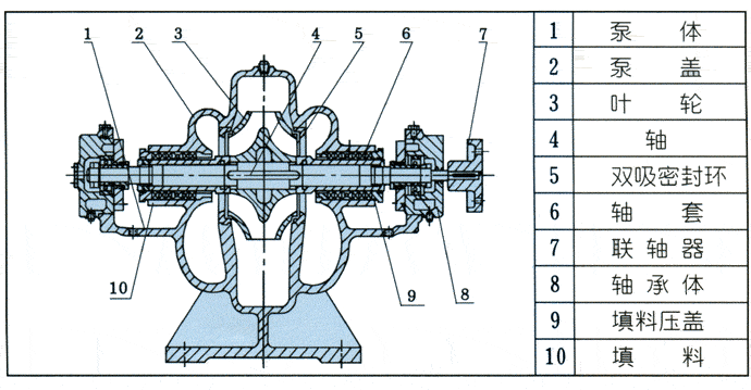S型泵中開(kāi)離心泵產(chǎn)品結(jié)構(gòu)圖: