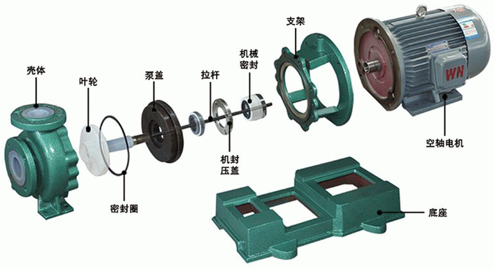 IHF-D型襯氟化工泵零件組裝圖: