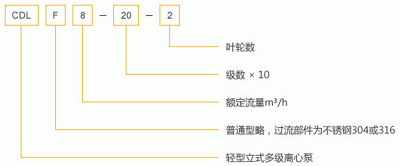 CDLF型不銹鋼立式多級(jí)離心泵型號(hào)說(shuō)明:
