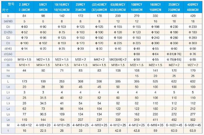 MCY14-1B定量軸向柱塞泵外形尺寸表:
