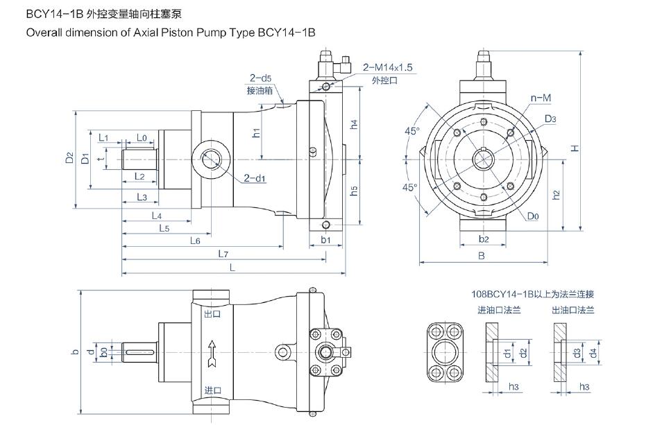 BCY14-1B型高壓軸向柱塞泵外形尺寸: