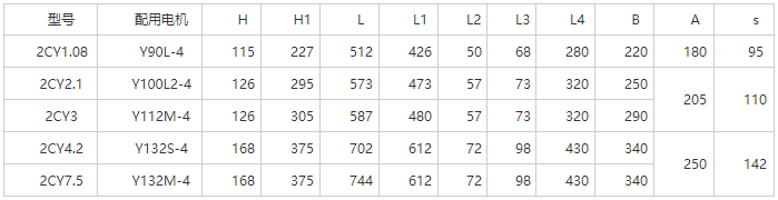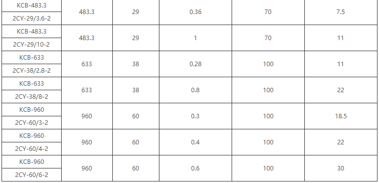 2CY齒輪式潤滑泵性能參數(shù)表: