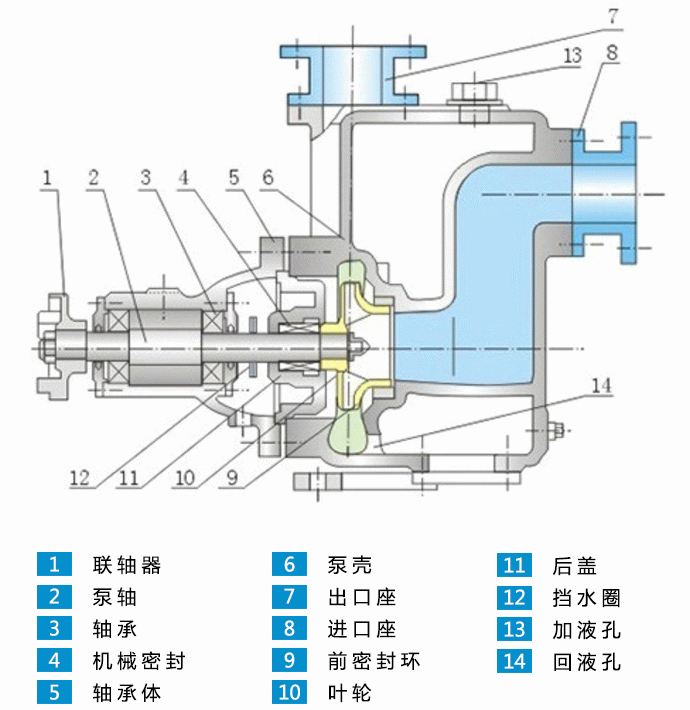 2、介質(zhì)PH值鑄鐵泵為6~9,不銹鋼泵為1~14。