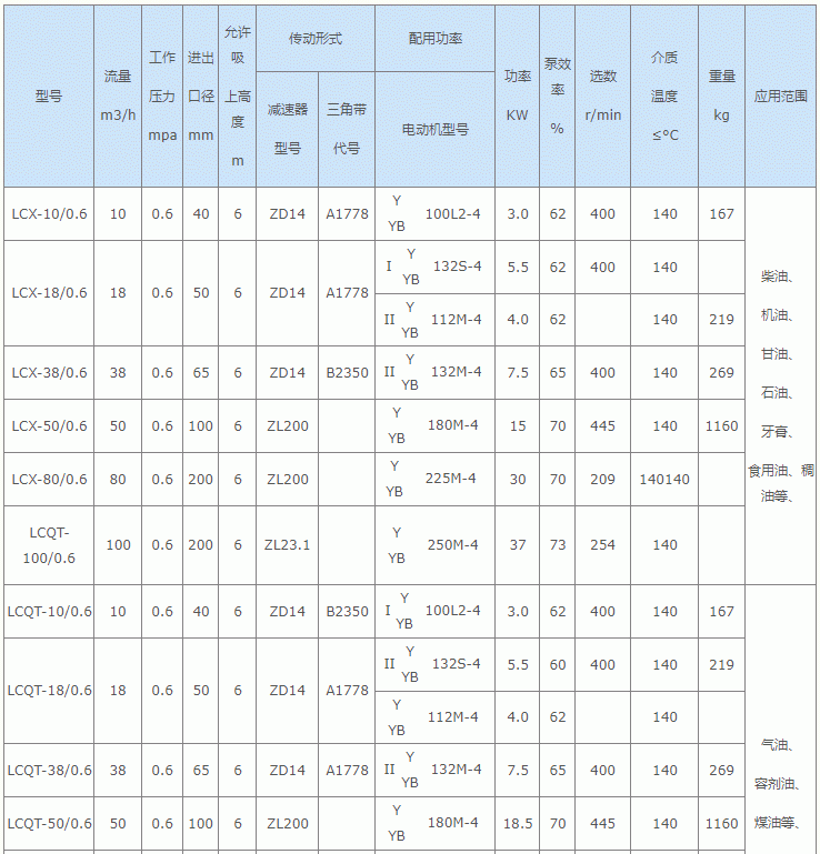 我公司生產(chǎn)的LC型羅茨油泵,分皮帶傳動(dòng)和齒輪減速器驅(qū)動(dòng)兩種形式。此泵具有:低轉(zhuǎn)數(shù)、效率高、體積小、流量大、消耗功率小、自吸能力強(qiáng)、不用引油、使用方便等特點(diǎn)。可廣泛用于輸送石油及石油產(chǎn)品(汽油可換銅泵葉)和工廠輸送各種油類和液體。如原油、油漆、潤(rùn)滑油、玻璃膠、油脂酸、牙膏和淡堿性(肥皂加工)液體等;食品加工可輸送各種液體,如豆?jié){、酵母、糖稀等。裝卸各種油槽車及油輪等速度快、效率高、使用方便,可以正反轉(zhuǎn)工作。