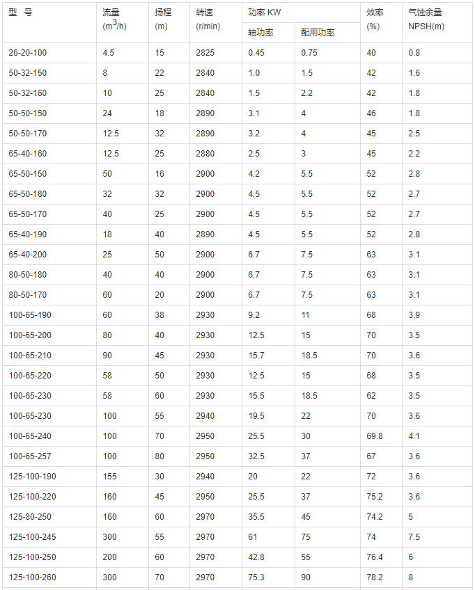 LQRY型高溫油泵性能參數(shù)表:
