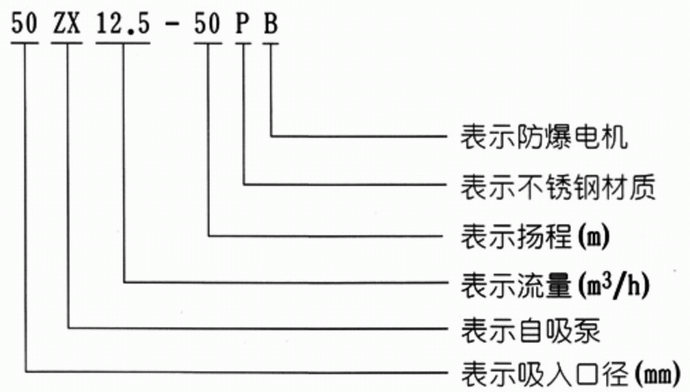ZXB型防爆自吸泵型號說明:2、適用于清水、海水及帶有酸、堿度的化工介質液體和帶有一般糊狀的漿料(介質粘度≤100厘珀、含固量可達30%以下)。