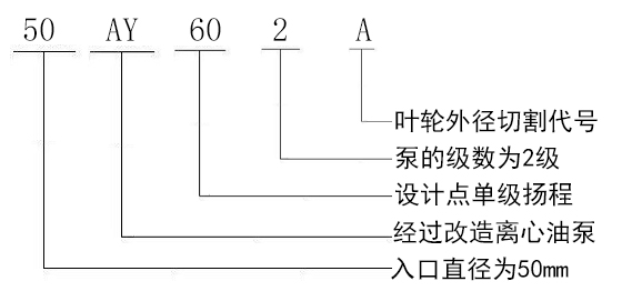 AY型單、兩級(jí)離心油泵型號(hào)說(shuō)明: