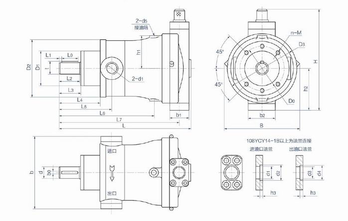 YCY14-1B壓力變量軸向柱塞泵外形尺寸: