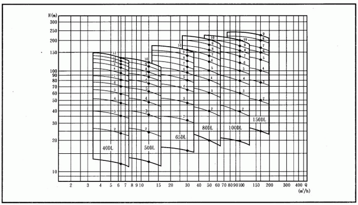 DL型立式多級離心泵性能范圍圖: