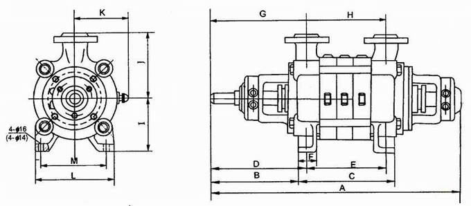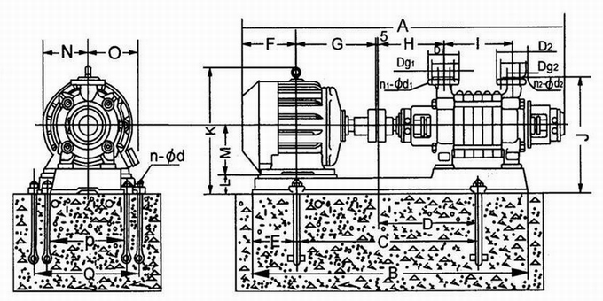GC型臥式鍋爐給水多級(jí)離心泵外形尺寸圖: