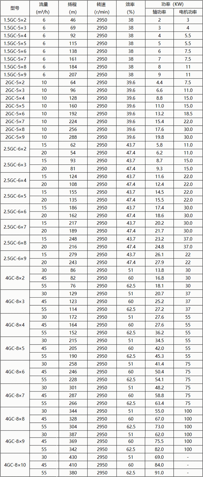 GC型臥式鍋爐給水多級(jí)離心泵產(chǎn)品參數(shù):