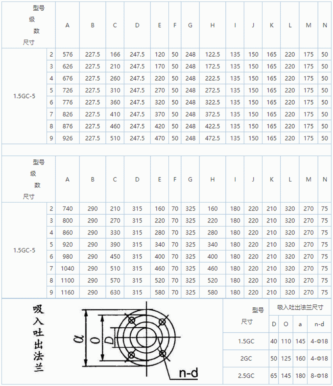 1、GC型水泵為多級(jí)分段式,1.5GC-4GC四個(gè)型號(hào)的進(jìn)出口分別在進(jìn)水段和出水段上,均垂直向上,其揚(yáng)程可根據(jù)使用需要而增減水泵級(jí)數(shù)。水泵裝配良好與否,對(duì)性能影響很大, 尤其是各個(gè)葉輪的出口與導(dǎo)翼進(jìn)口之相對(duì)位置,每吸葉輪的吐出口中心必須對(duì)準(zhǔn)導(dǎo)翼的中心,其中稍有偏差即將使水泵的流量減少,揚(yáng)程降低,效率差,故在檢修后裝配時(shí)務(wù)必注意,若有偏差必須調(diào)整。