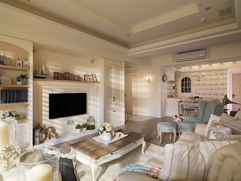 嵌入式空調(diào)的設計使得壁掛機顏值頓時升高一大截。層高較高的房子多級吊頂做出了空間的層次感。